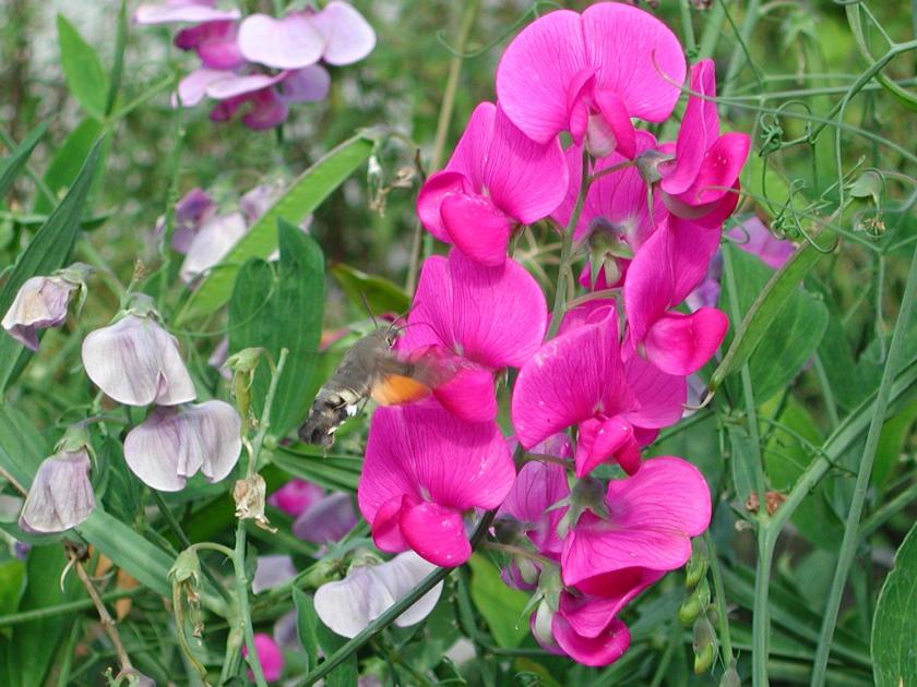 Je remercie Vincent Magnan de ces renseignements et de toutes ces magnifiques photographies d'un sphinx-colibri butinant les pois de senteur, qu'il m'a aimablement fait parvenir.